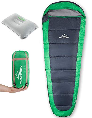 - ★ NICHT KLEMMENDER 2-WEGE REISSVERSCHLUSS – Kein Frust mehr über Schlafsäcke, bei denen die Reißverschlüsse schnell kaputt gehen oder leicht klemmen. Der Mountrex Schlafsack hat qualitativ hochwertige wärmeisolierte Zwei-Wege Reißverschlüsse, die lange halten und nicht klemmen. 100% frustfrei!